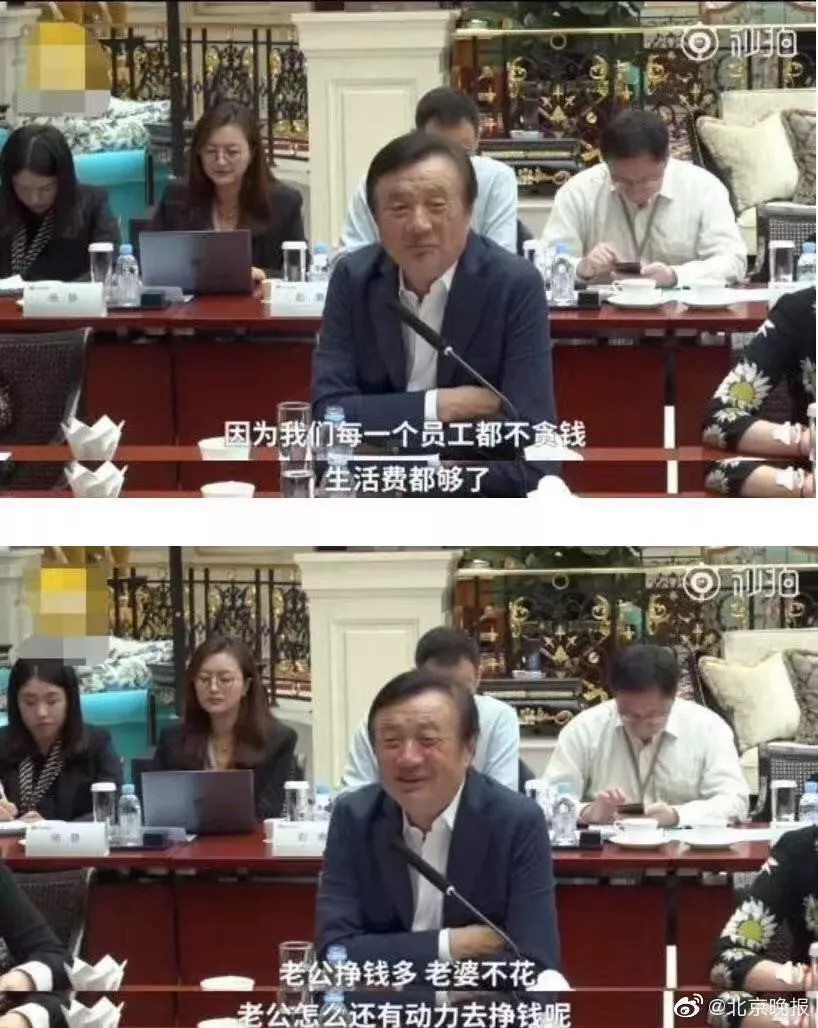 5月21日,任正非在華為總部接受采訪時,談到華為每年花200億美元在研發(fā)上,即使華為財務(wù)受到一點挫折也不會影響科研投入,因為員工都不貪錢,生活費都夠了?!澳闳柹莩奁返昀镔I幾個包的,老公是哪里的?華為的。老婆不花,老公怎么有動力去掙錢呢?”