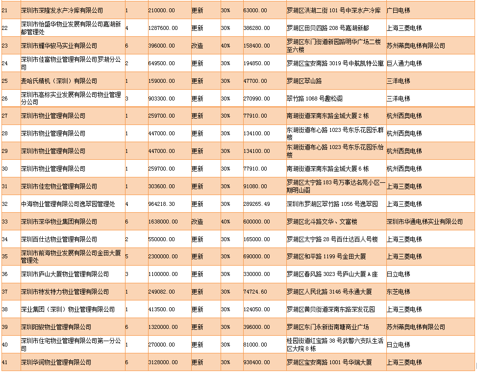 見圳客戶端·深圳新聞網(wǎng)2019年11月15日訊 11月13日,深圳市市場(chǎng)監(jiān)督管理局羅湖監(jiān)管局發(fā)布關(guān)于2019年羅湖區(qū)老舊電梯更新改造大修補(bǔ)助名單的公示,公示稱,為推進(jìn)羅湖區(qū)老舊電梯更新改造大修工作,保障市民群眾生命安全,羅湖區(qū)施行老舊電梯更新改造大修補(bǔ)助政策。2019年,經(jīng)專家現(xiàn)場(chǎng)驗(yàn)收,羅湖區(qū)共有41家申請(qǐng)單位的112臺(tái)老舊電梯更新改造大修工程通過(guò)驗(yàn)收(其中更新84臺(tái)、改造12臺(tái),大修16臺(tái)),涉及工程總價(jià)3084.57萬(wàn)元,發(fā)放補(bǔ)助資金9640009.05元。