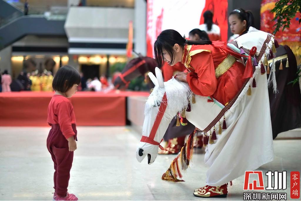 2019年2月19日,福田區(qū),農(nóng)歷春節(jié)剛過,一位小女孩好奇的看著準(zhǔn)備表演“紙馬舞”的演員。