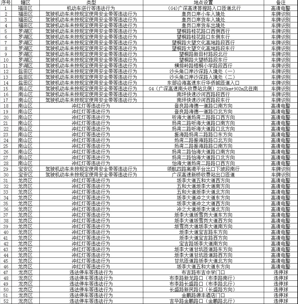 見圳客戶端·深圳新聞網(wǎng)2019年11月22日訊 各位司機(jī)們注意啦!11月21日,記者從深圳市公安局交通警察局獲悉,近日這些路段將啟用174套交通技術(shù)監(jiān)控設(shè)備,機(jī)動(dòng)車逆行、沖紅燈、未按規(guī)定使用安全帶等違法行為,都會(huì)被拍到。