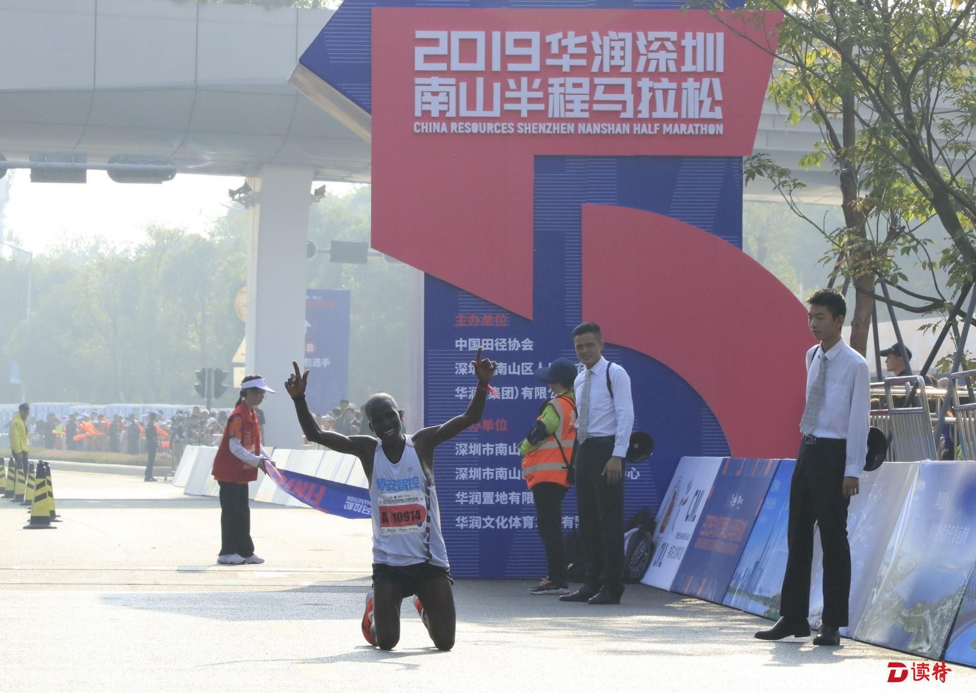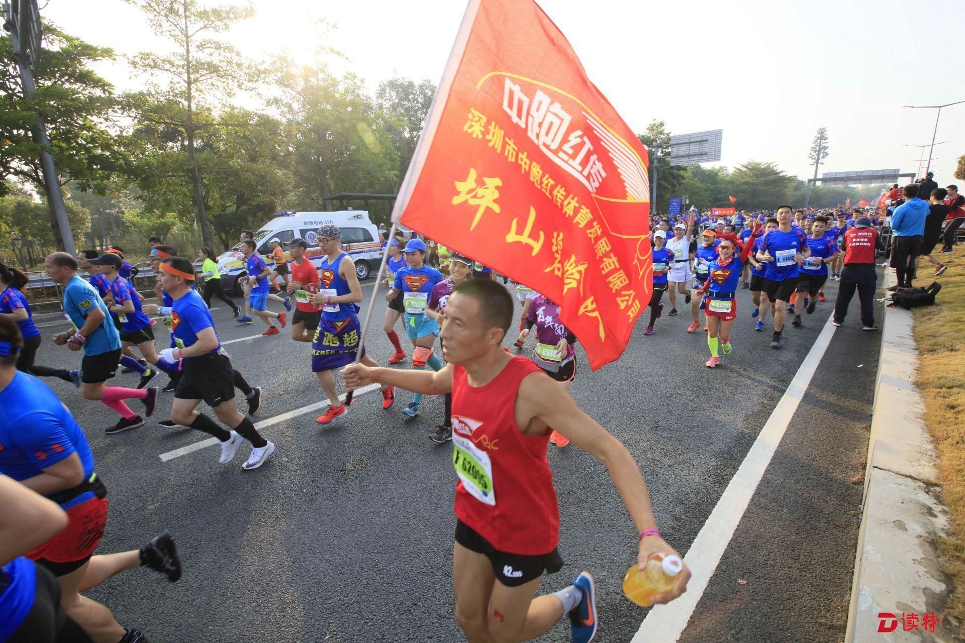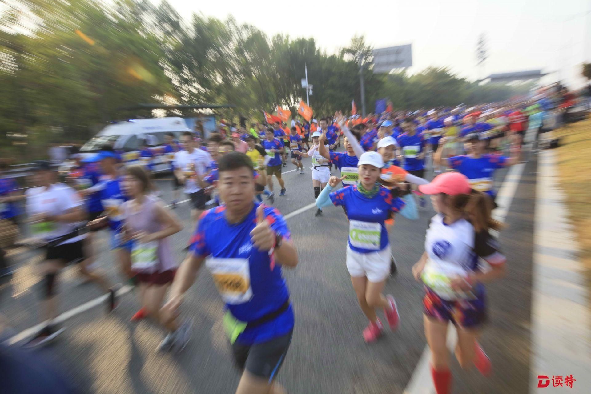 8點(diǎn)鳴槍,1.6萬名參賽選手準(zhǔn)時(shí)開跑,由深圳人才公園東門出發(fā),途徑南山區(qū)多個(gè)地標(biāo)建筑,向終點(diǎn)華潤深圳灣體育中心奔跑。經(jīng)過一番激烈的角逐,9點(diǎn)過,有選手率先抵達(dá)終點(diǎn),男女組冠亞季軍陸續(xù)誕生。