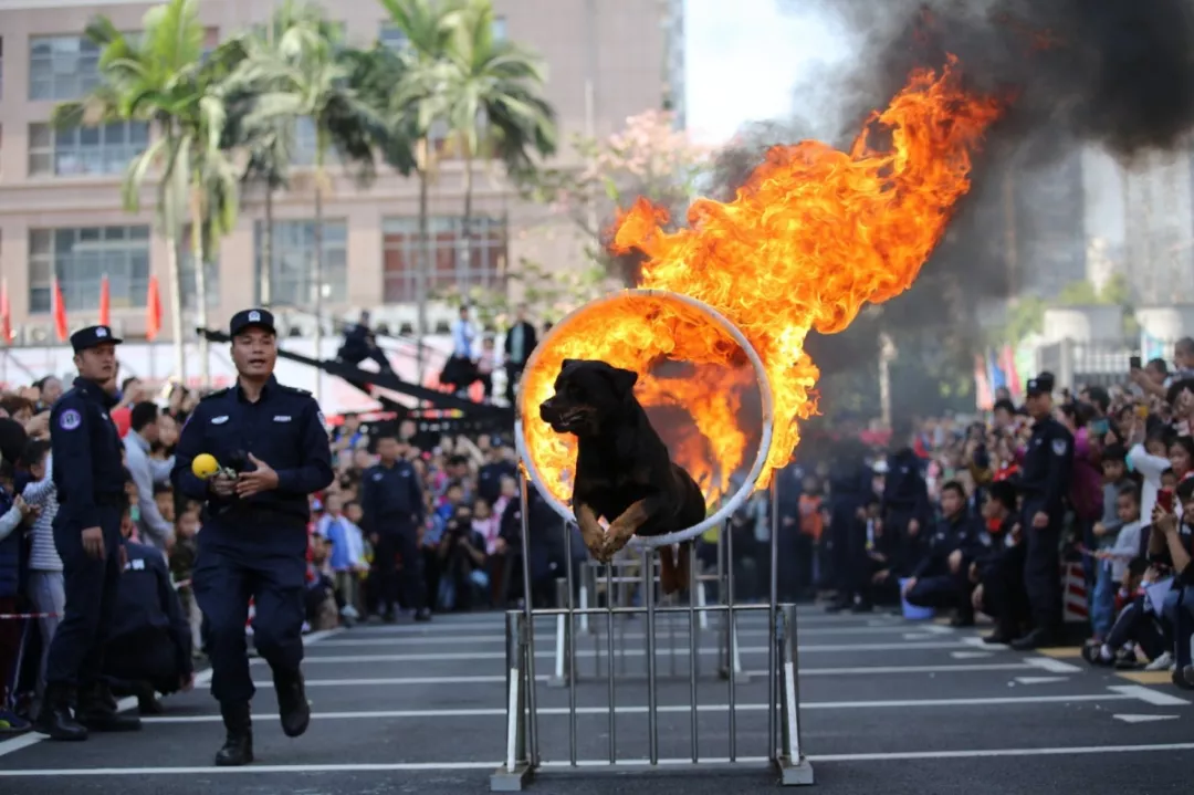 實戰(zhàn)撲咬、解救人質(zhì)、跳火圈……警犬強悍威猛、敏銳靈動,成為了比武展示活動上的焦點。拳術(shù)表演動作利落瀟灑,孔武有力,展現(xiàn)著福田警察的精神風(fēng)貌,市民朋友贊嘆不已。