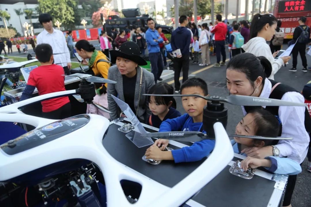 防暴頭盔、防爆盾牌、槍支警械、無人機、反恐車酷勁兒十足。大家興致勃勃地穿戴警用裝備,過一把警察癮,圓一回警察夢,做“圳”里最靚的仔!
