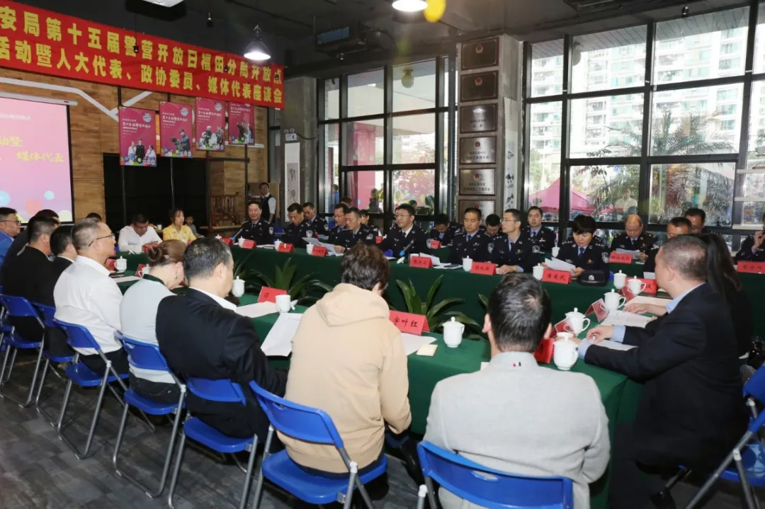 在警察文化中心,福田公安分局開展了關(guān)愛警察暨“人大、政協(xié)、媒體進警營”建言獻策座談活動,多方代表近距離互動交流,全方位了解警隊工作,開門納諫為民解難題,進一步增進對分局工作的理解、信任和支持。隨后,福田公安分局領(lǐng)導(dǎo)和人大代表、政協(xié)委員、媒體代表慰問優(yōu)秀民警代表,并贈授《福田警色》、《平安景色》、《福警老照片》報道畫冊。