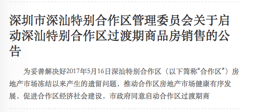 12月2日關于啟動深汕特別合作區(qū)過渡期商品房銷售的公告發(fā)布