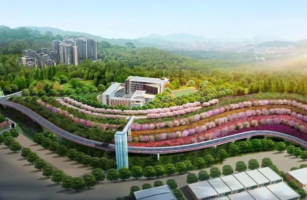 項(xiàng)目包括高架橋梁道路、由三部垂直電梯組成的上下山慢行系統(tǒng)、夜景燈光系統(tǒng)、邊坡綠化景觀等。
