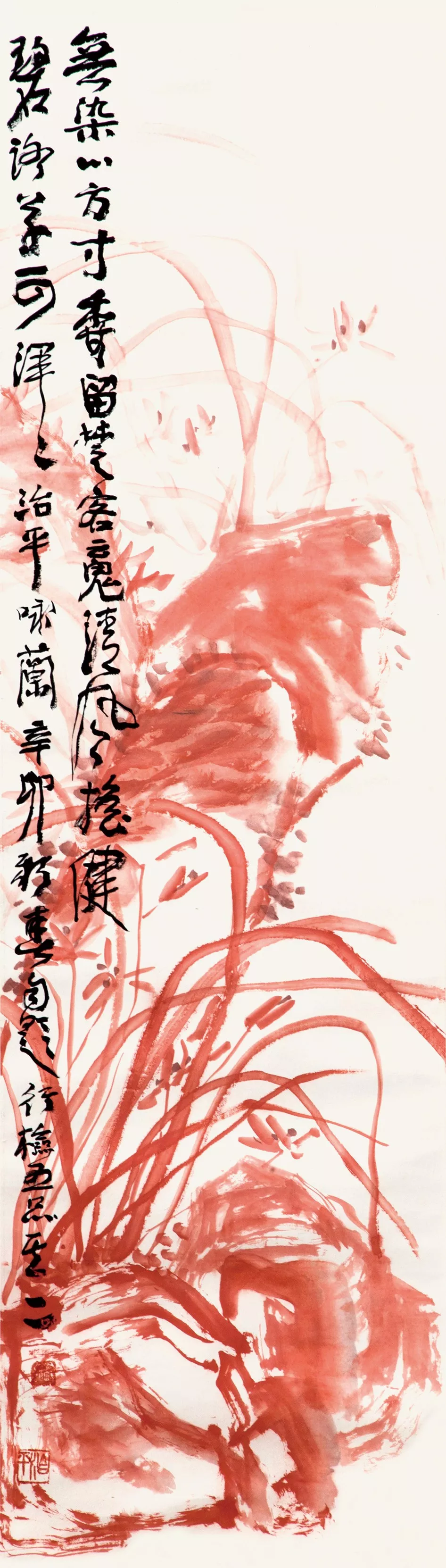 作品是人性在宣紙上的延伸。魏治平如是說,亦如是踐行。本次展覽還會展出一套用朱砂繪成的“行鑒五品”。“行鑒五品”是魏治平結(jié)合“歲寒三友”與“花中四君子”提出的概念,指的是梅、蘭、竹、菊、松。魏治平認為,“蘭,空谷幽香,孤芳自賞;竹,篩風弄月,瀟灑一生;菊,凌霜自行,不趨炎勢;梅,剪雪裁冰,一身傲骨;松,正直蒼健,常青不老。時時以五品自檢,能觀照本我;事事用五品自律,可清澈心智?!?/p>