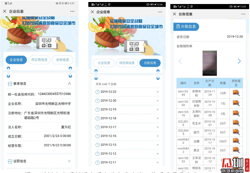 據(jù)悉,截至2019年12月13日,已有19000余家食品生產經營主體注冊食品安全追溯,共采集35萬余商品條數(shù)據(jù)信息,有效證照近15萬張。食品追溯系統(tǒng)應用實現(xiàn)全市2570家中小學、幼兒園學校食堂全覆蓋,深圳4419家商超使用該系統(tǒng),共上傳有效臺賬63萬條,為全市的食品安全追溯織就了嚴密的一張網。