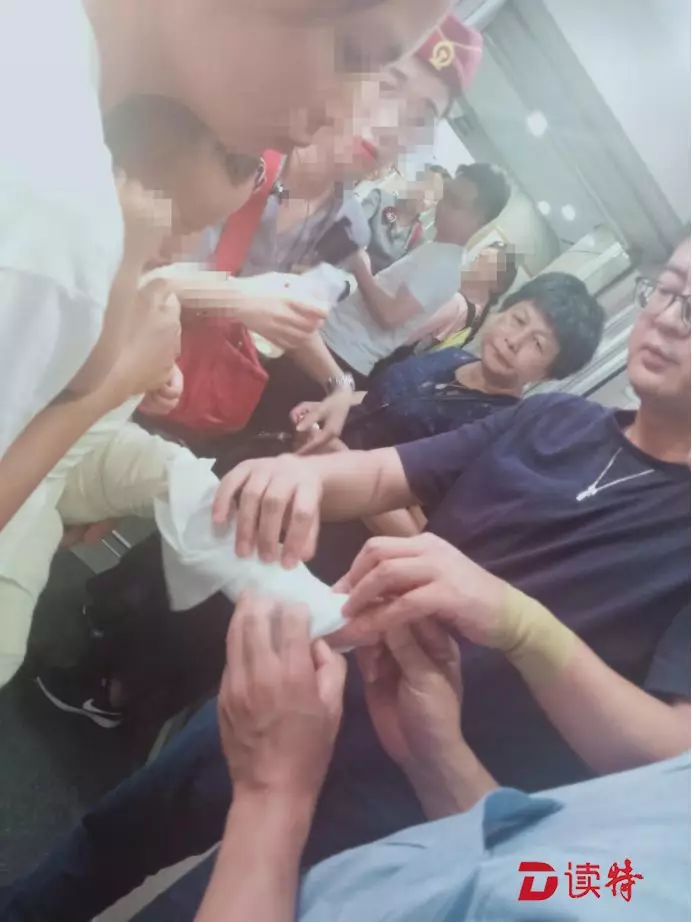 2019年7月27日晚上,一名一歲小童在高鐵上被開水燙傷,同在高鐵上的龍華區(qū)人民醫(yī)院燒傷整形科黃謙主任等一行人迅速前往3號車廂查看情況。