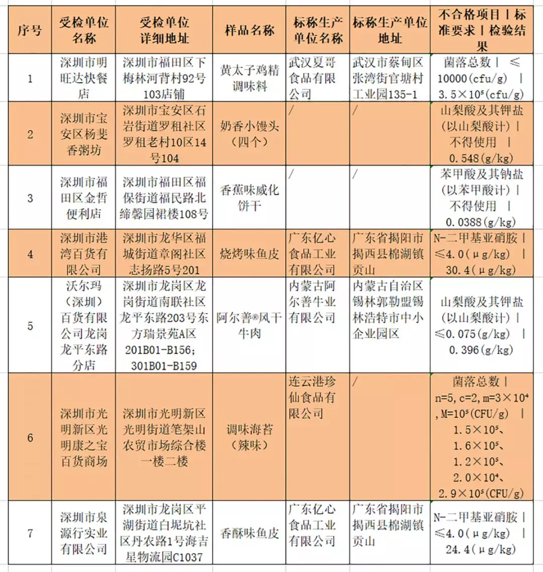 本次不合格食品具體信息如下