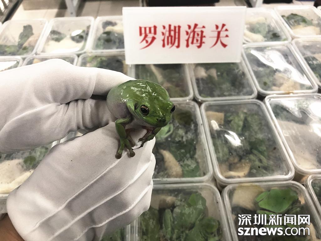 3月21日兩名旅客攜帶670只活體老爺樹蛙入境,被深圳海關(guān)隸屬羅湖海關(guān)當場查獲。