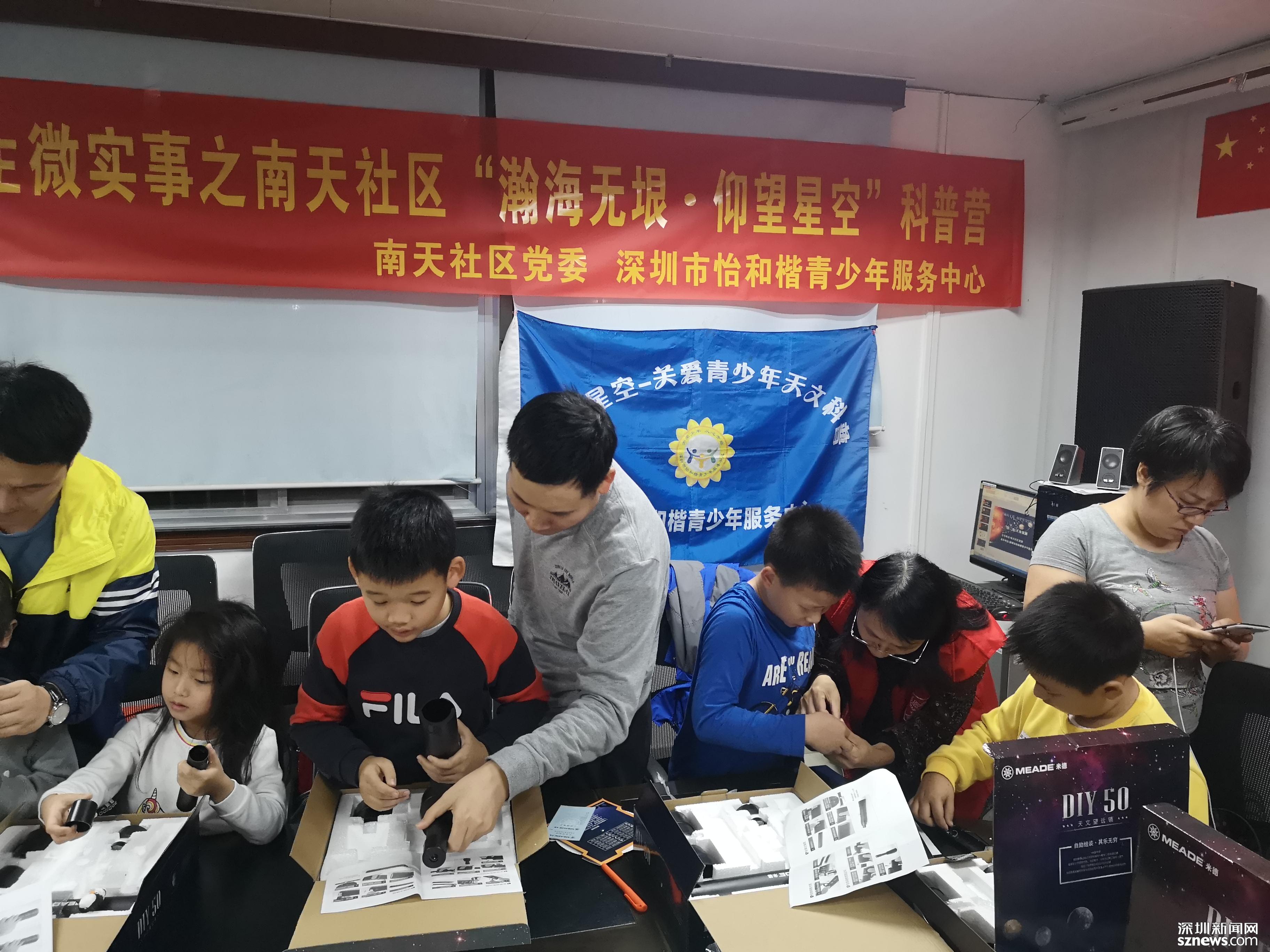 見圳客戶端、深圳新聞網(wǎng)2020年1月7日訊 為全面貫徹落實(shí)《全民科學(xué)素質(zhì)行動(dòng)計(jì)劃綱要》,提高福田區(qū)園嶺街道南天社區(qū)青少年科學(xué)素質(zhì)。南天社區(qū)高度重視社區(qū)青少年居民天文科普知識(shí),為青少年打開宇宙夢(mèng)想之門。由南天社區(qū)黨委主辦,深圳市怡和楷青少年服務(wù)中心承辦的《瀚海無垠仰望星空科普營 》活動(dòng)在南天社區(qū)及社區(qū)天臺(tái)戶外如火如荼展開。