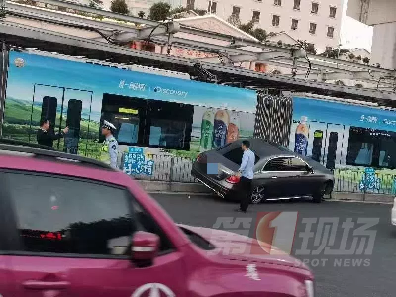 原標(biāo)題:突發(fā)!龍華一奔馳車撞上有軌電車 事故并未造成人員受傷