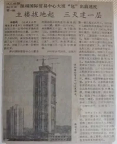 不少人對(duì)深圳的第一印象是來(lái)自一條新聞:深圳國(guó)貿(mào)大廈工程,取得了“三天一層樓”的速度。