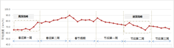 這兩周的高速公路運行速度為春運期間的最低水平。看圖: