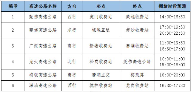各主要高速公路擁堵時(shí)段預(yù)測如下: