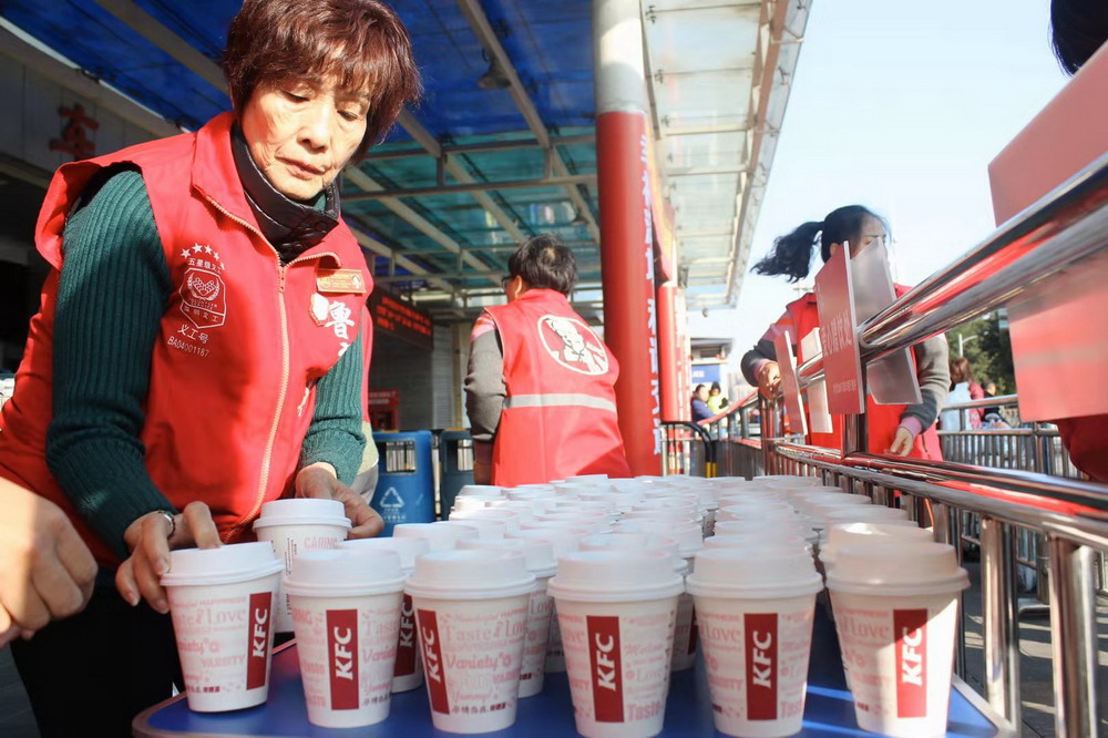 福永義工以及深圳肯德基工作人員現場贈送熱飲。