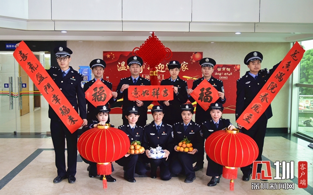 羅湖邊檢站民警喜氣洋洋拍形象宣傳照片,迎接出入境旅客回家。