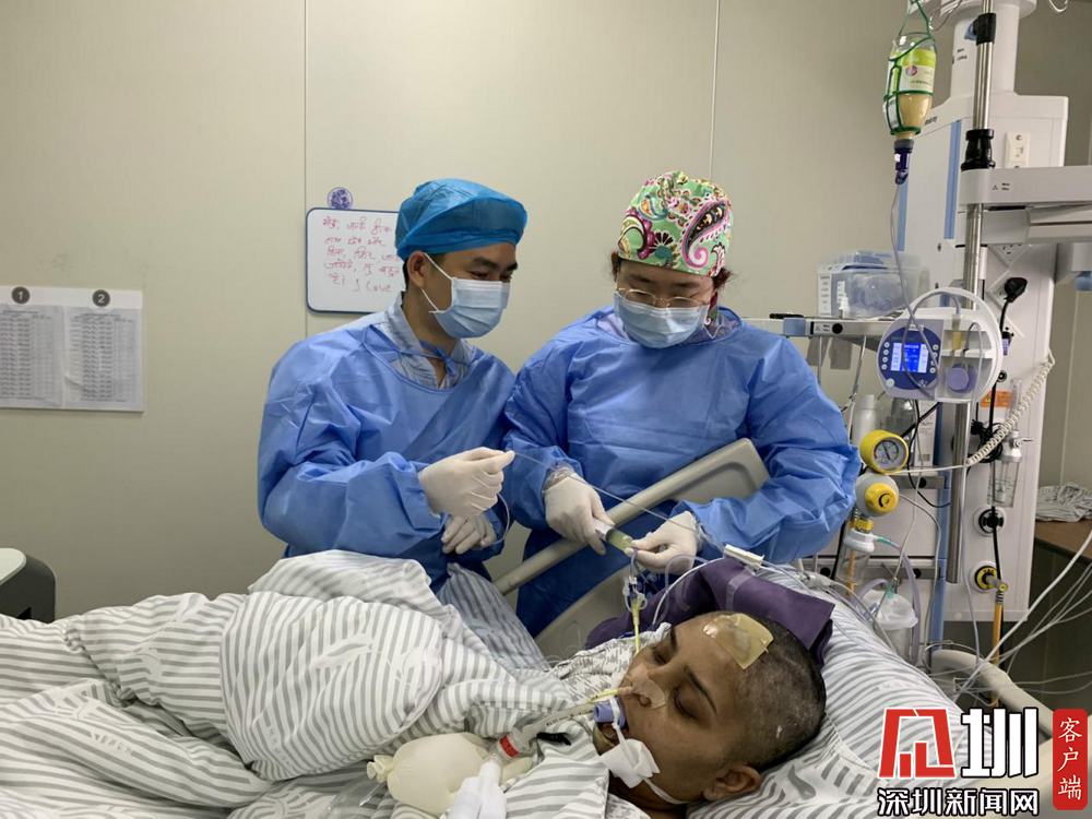 護士秦寶邦和韓天琦正在給印度籍女教師喂藥和水。此前,她因化膿性鏈球菌感染引發(fā)了重癥肺炎,被轉(zhuǎn)送入醫(yī)院。在ICU的全力救治下,她的病情已經(jīng)有了很大的好轉(zhuǎn)。