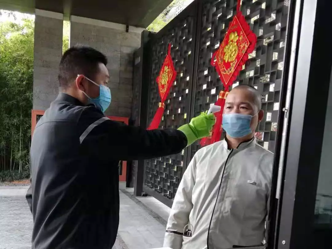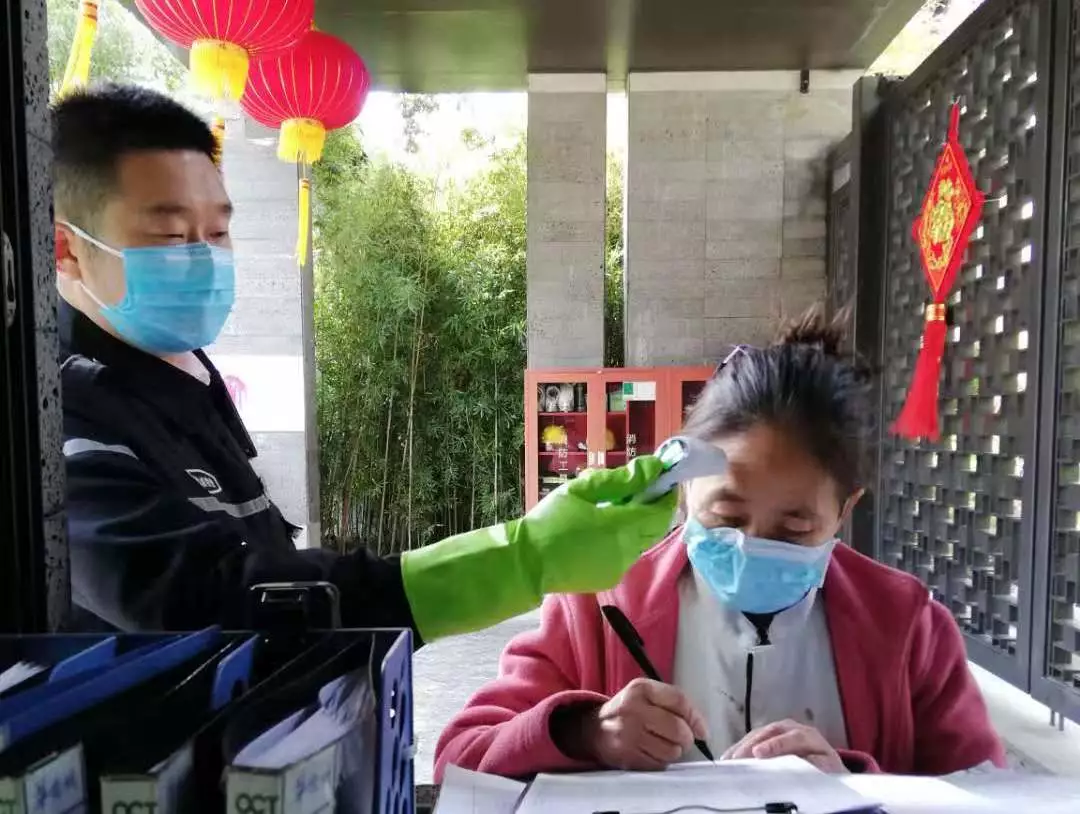 對車輛和人員出入取消刷卡自動開閘,改為手動出入開閘,禁止外來人員出入;門口、車道崗配備測溫儀,對所有進出小區(qū)人員進行體溫測量,并做好登記。