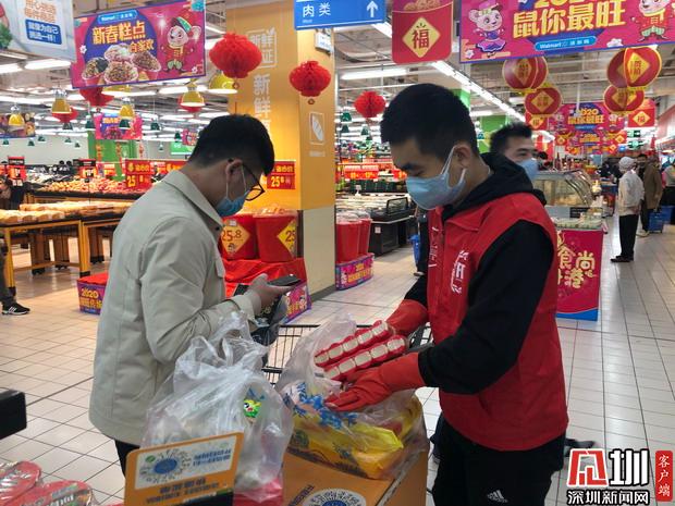 在全市的各個商超中,像洪光遠、于文華、于文平這樣的志愿者還有很多。據(jù)了解,本著堅持“安全第一”的原則,志愿者在充分保證個人防護的基礎上,經(jīng)過培訓后于2020年1月29日正式上崗服務,協(xié)助各大商超保障全市肉、菜、水果等供應,助力防控疫情。截止至今,志愿者的服務已經(jīng)覆蓋福田區(qū)、羅湖區(qū)、南山區(qū)等七個區(qū)的沃爾瑪、盒馬鮮生、華潤萬家等50多家商超,參與服務的志愿者達910人次。