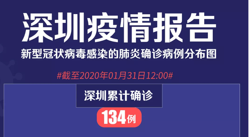 見圳客戶端· 深圳新聞網(wǎng)2020年1月31日訊(見圳客戶端、深圳新聞網(wǎng)記者 劉夢婷)截至1月31日12時,深圳累計確診的“新型肺炎”病例已達到134例。