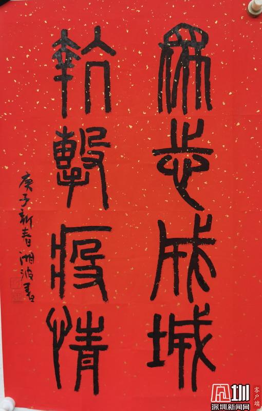 流暢的線條,簡(jiǎn)練的筆刃,一個(gè)個(gè)一線醫(yī)務(wù)人員奮戰(zhàn)疫情的場(chǎng)景躍然紙人,他們?nèi)蔽溲b身著防護(hù)服,或手持醫(yī)療器械,或?yàn)椴∪嗽\治,或記錄檢測(cè)數(shù)據(jù)……一幕幕緊張的工作畫面浮現(xiàn)在眼前。記者看到,這些畫作上均落款"抗疫前線最可敬的人"。此外,另一幅紅色大紙書寫的篆字書法作品書寫的內(nèi)容為:眾志成城,抗擊疫情。