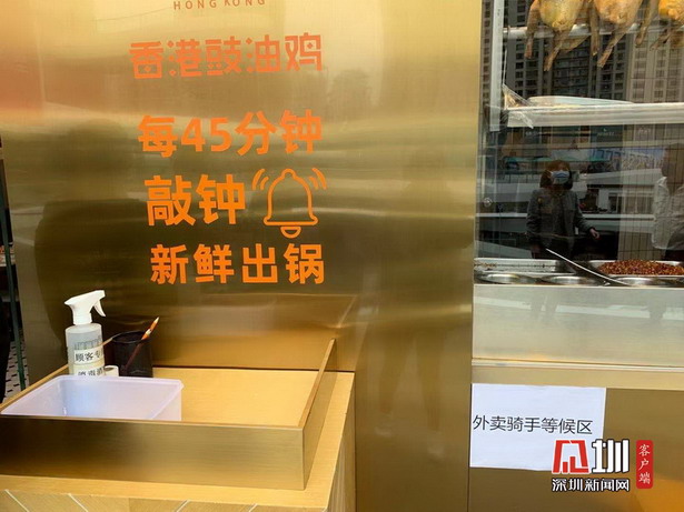 根據(jù)相關(guān)規(guī)定,兩家餐廳門口均設(shè)立預(yù)防區(qū)及外賣騎手區(qū),餐廳配備了體溫測試儀及消毒酒精,每位到店的顧客或騎手均需進(jìn)行體溫檢測及消毒,特別是金戈戈豉油雞餐廳更為市民配備了口罩。
