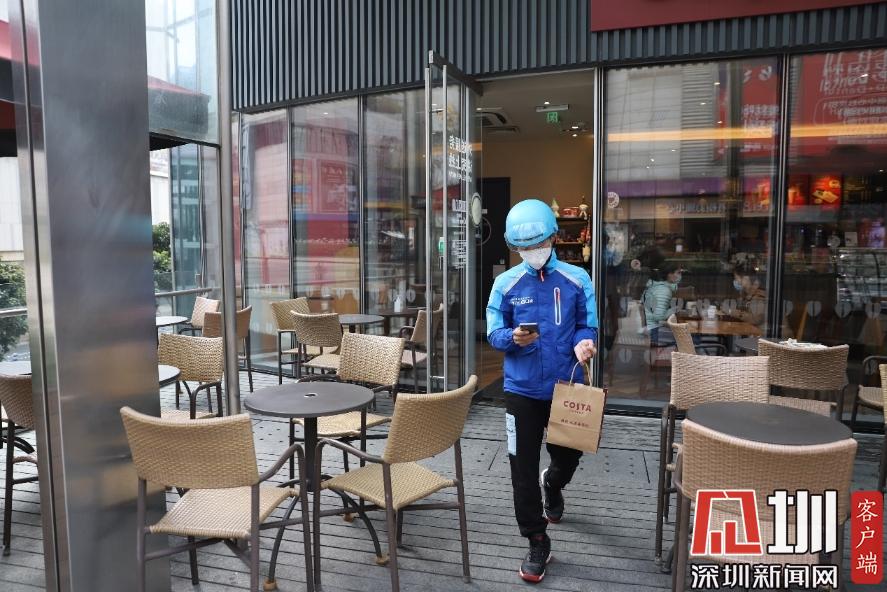 在咖啡店等待商家制作完成,取貨后,王彭輝便馬不停蹄地騎著電動(dòng)車前往訂單上的地址。平日繁華的南山商區(qū),現(xiàn)在空空蕩蕩的,除了偶爾有車輛開過,路上幾乎都是外賣小哥、快遞小哥的身影,“現(xiàn)在就是大家都待在家里,路上人和車少了,我們也能更快地把訂單送達(dá)?!蓖跖磔x說:“我以前是在梅林那邊工作,剛開始來南山這邊送外賣的時(shí)候,對(duì)這里的路不熟悉,覺得每個(gè)路口都長得一樣,抬頭都是大廈,低頭都是人,但是做得久了以后,慢慢的就熟悉了?!?/p>
