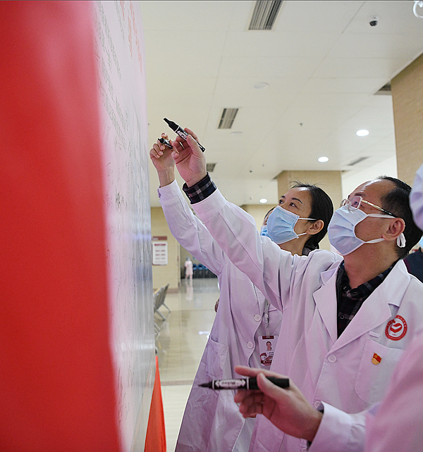 在整個疫情阻擊戰(zhàn)中,龍崗區(qū)婦幼保健院黨組織自始至終都發(fā)揮著不可替代的先鋒模范作用,在疫情剛開始的時候,以曹樂勝院長為首的醫(yī)院黨委就身先士卒緊急行動起來迅速投入到抗病毒戰(zhàn)斗中去。院黨委發(fā)出了通知,號召廣大員工積極行動起來,投身疫情防控第一線,全院人員迅速響應(yīng),截止2月3日,報名人數(shù)達369人,其中黨員112人。醫(yī)院組織了部分代表參加的宣誓儀式,大家激情滿懷地舉起右手,莊嚴承諾:我將堅守初心,勇?lián)姑?;無條件服從大局,時刻準備著聽候組織調(diào)令;立志沖鋒在前,誓到防疫第一線;我必履職盡責,嚴守規(guī)范,防護到位,確保零感染;保證與病毒戰(zhàn)斗到底,不打贏這場硬仗絕不收兵。