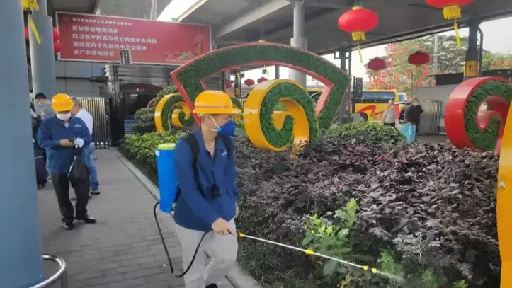 蛇口街道辦派專人對(duì)深圳灣口岸外圍重點(diǎn)防控區(qū)域進(jìn)行消殺滅菌工作