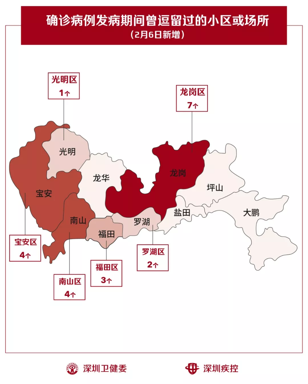 2月6日,疾控專業(yè)人員通過最新的流行病學調(diào)查確認,深圳新增21個小區(qū)(場所),有新確診的病人在出現(xiàn)病征期間曾經(jīng)逗留。