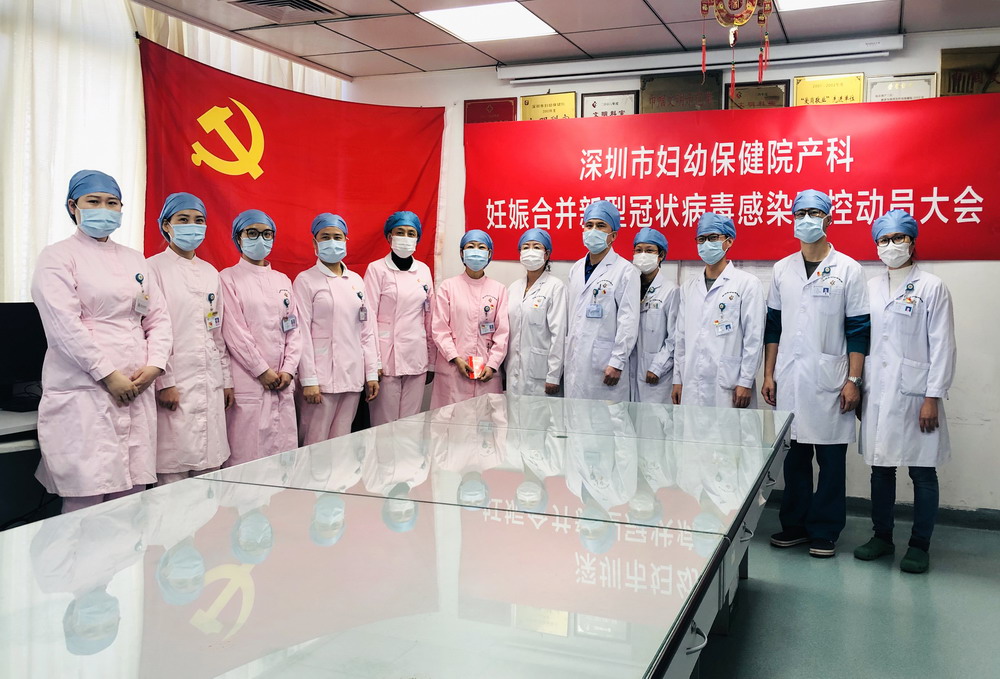 產(chǎn)科自愿參加妊娠合并新冠防控病區(qū)的黨員們,在新成立的病區(qū)重溫入黨誓詞