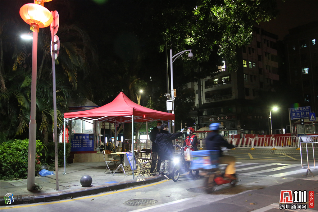97年出生的胡規(guī)負責皇崗村的南崗亭1年多了,“附近居民都喜歡來皇崗村吃宵夜,熱鬧的時候有好幾千人,現(xiàn)在每天都不足百人。人雖少了,但是安保工作并沒有因此松懈下來,現(xiàn)在最重要的是防疫”。胡歸告訴記者,一次晚上值班站崗給進出的居民監(jiān)測體溫,一位阿姨從旁邊經(jīng)過,特地走過來給我鞠了一躬。當時心里特別暖,覺得自己的勞動獲得了別人的尊重?!?/p>