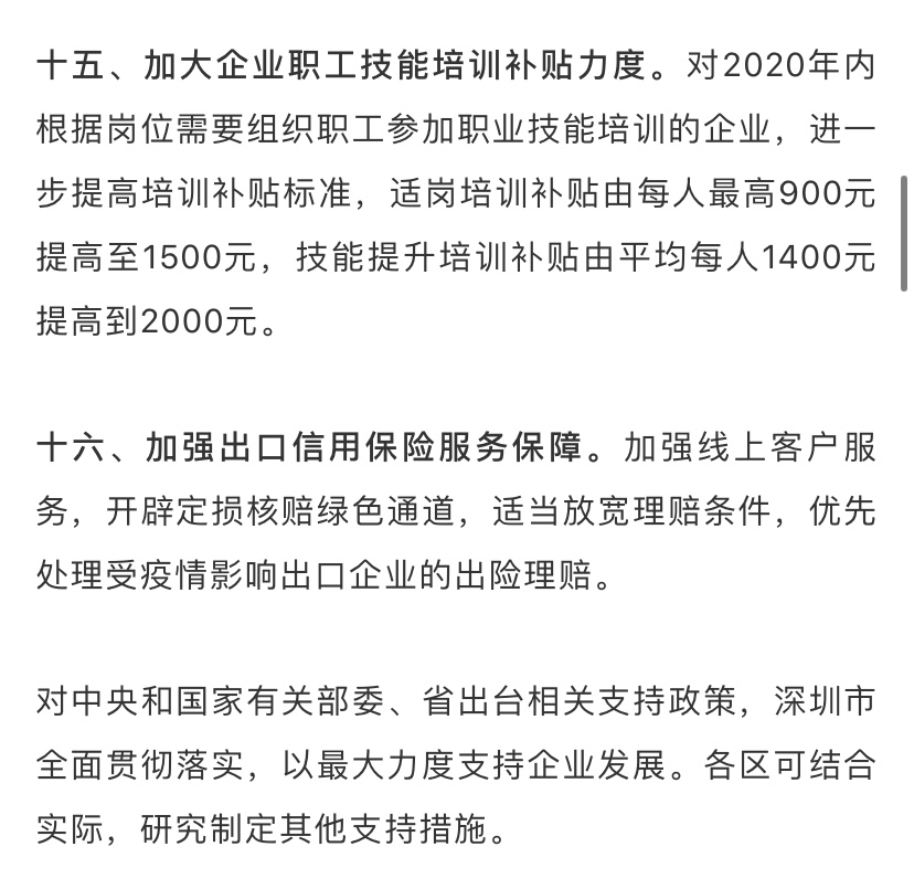 據(jù)了解,為深入貫徹落實習(xí)近平總書記關(guān)于堅決打贏疫情防控阻擊戰(zhàn)的重要指示精神,全面落實黨中央國務(wù)院和省委省政府關(guān)于做好新型冠狀病毒感染的肺炎疫情防控工作的決策部署,在做好防控工作的同時統(tǒng)籌抓好改革發(fā)展穩(wěn)定各項工作,支持企業(yè)共渡難關(guān),保障城市平穩(wěn)運行和經(jīng)濟穩(wěn)定增長,深圳市政府特制定該工作措施。