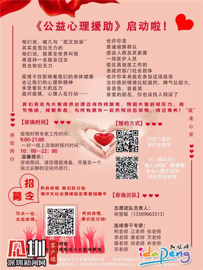 葵涌辦事處壩光社區(qū)婦聯(lián)副主席、大鵬潮汐文化傳播有限公司負(fù)責(zé)人謝慧敏積極響應(yīng)新區(qū)群團(tuán)工作部建立新區(qū)防疫心理疏導(dǎo)志愿服務(wù)隊的號召,聯(lián)合多家機(jī)構(gòu)啟動公益心理援助,為市民提供線上調(diào)節(jié)情緒、舒緩壓力等免費心理服務(wù),共渡心理關(guān),服務(wù)將持續(xù)到疫情結(jié)束。