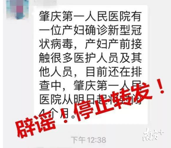 “肇慶第一人民醫(yī)院有孕婦確診,產(chǎn)前接觸很多醫(yī)護(hù)人員?,F(xiàn)在要隔離183人,封閉醫(yī)院四個(gè)月。”近日,肇慶的微信群中,這條謠言瘋傳,引發(fā)市民恐慌,不敢去醫(yī)院就醫(yī)。