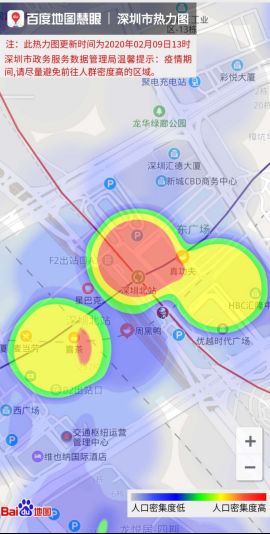 隨著春節(jié)假期結(jié)束,市民陸陸續(xù)續(xù)返回深圳。大量人員聚集、流動(dòng)將對(duì)疫情防控帶來(lái)新的考驗(yàn)。防治疫情一個(gè)重要的途徑就是避免去人多的地方,如何才能知道哪里人多呢?近日,深圳市政務(wù)服務(wù)數(shù)據(jù)管理局聯(lián)合百度地圖慧眼上線了深圳城市“熱力圖”產(chǎn)品。用戶可通過(guò)“i深圳”APP中疫情防控服務(wù)專區(qū)的人流熱力圖圖層,查看全市各區(qū)域?qū)崟r(shí)人口流量密度,供出行參考。