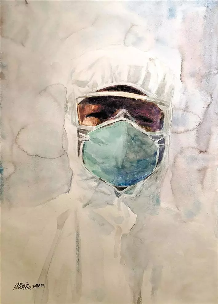 魯文詠在詩歌《最美的人,你看不見臉》中寫道:“最美的人,你看不見他們的臉。他們的臉被口罩遮著,被護(hù)目鏡遮著,被防護(hù)服遮著,有時(shí),也被夜色遮著。他們在人群里穿行,在焦灼的企望的目光里穿行。他們來了,他們穿過,焦躁的人群就安靜下來。最美的人,你看不見他們的臉,看不見年齡,甚至性別。是的,天使不計(jì)年齡,天使不分性別。”
