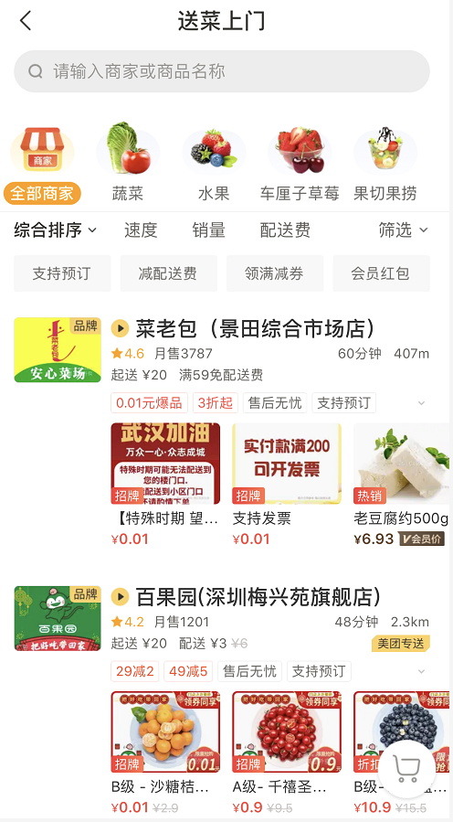 商品情況:店鋪較多,商品豐富。但部分門(mén)店因?yàn)檫\(yùn)力不足,暫時(shí)關(guān)閉了線上派送,可先看看自己所在地區(qū)是否提供配送。