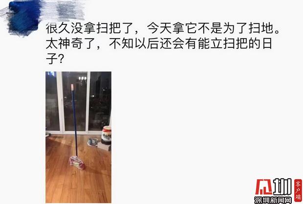 許久未拿掃把的潘先生今天也玩起來了