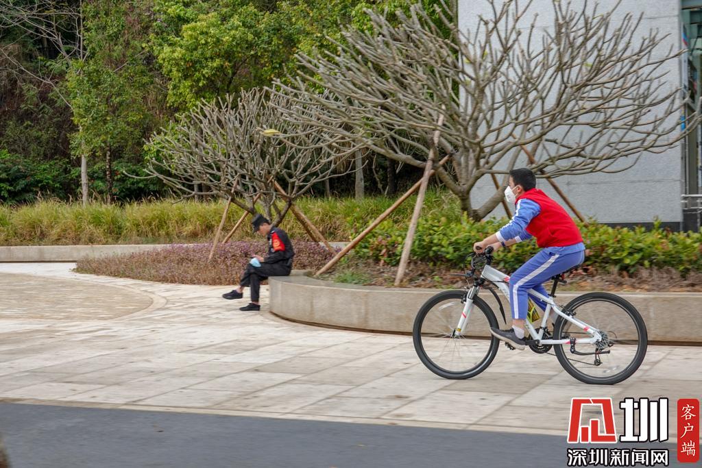 學生在紅荔路旁的輔道騎單車遛彎