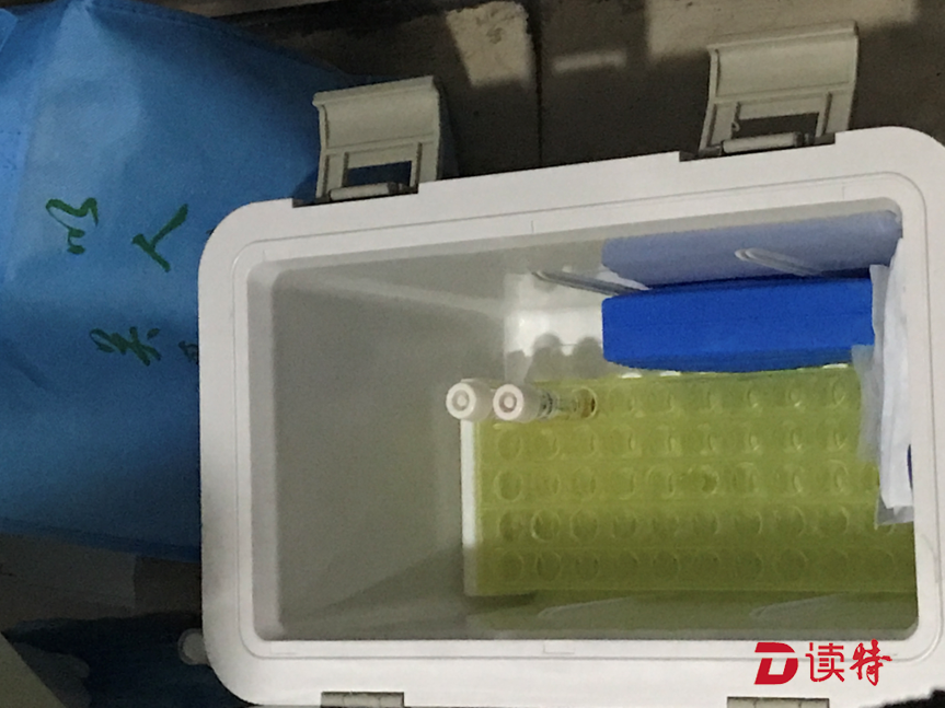 據(jù)了解,為了增加采樣的準(zhǔn)確性,每個醫(yī)學(xué)觀察居民均采用咽部和鼻腔分別取樣。醫(yī)護(hù)人員先用一個咽拭子在孫女士的咽喉內(nèi)部輕輕擦拭,另一個鼻拭子在鼻道內(nèi)鼻腭處轉(zhuǎn)動,然后將拭子放入貼有標(biāo)簽的樣本管內(nèi)。完成操作后,三位工作人員更換手套,為孫女士的愛人和孩子完成了采樣,采集的樣品被放入了工作人員隨身攜帶的“送檢專用箱”中。