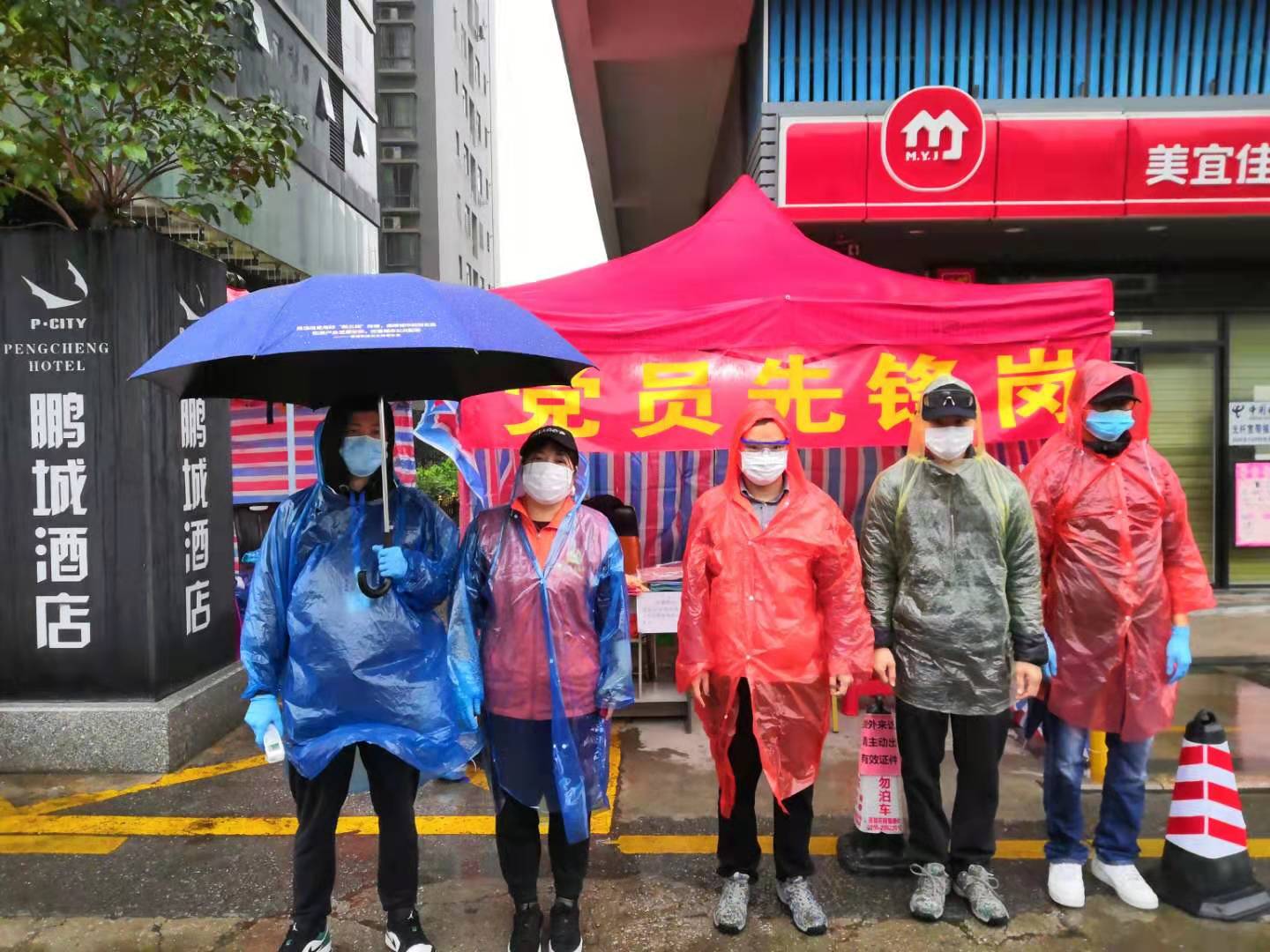 在龍華區(qū)福城街道茜坑社區(qū)的黨員先鋒崗上,工作人員和志愿者只有一襲最簡單的一次性雨衣,卻依然堅守在崗位上。(見圳客戶端、深圳新聞網(wǎng)記者沈婷)