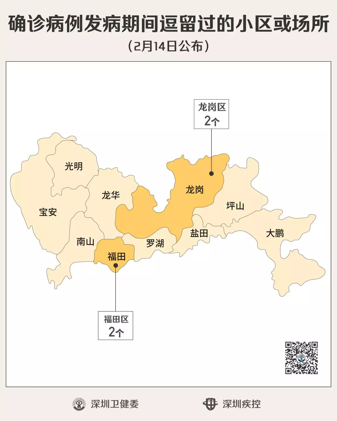 經(jīng)過(guò)疾控專(zhuān)業(yè)人員的流行病學(xué)調(diào)查確認(rèn),2月14日,深圳新公布4個(gè)“涉病”小區(qū)(場(chǎng)所),有新確診的病人在發(fā)病期間曾經(jīng)逗留。