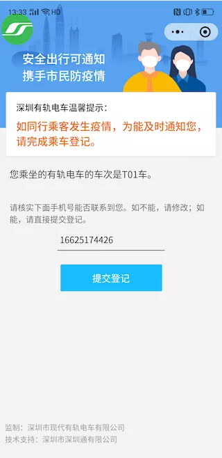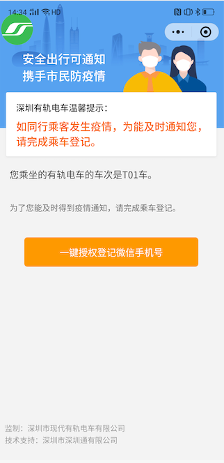 見圳客戶端·深圳新聞網(wǎng)2020年2月15日訊 據(jù)“深圳市軌道交通”當(dāng)前,防疫工作仍舊是重中之重,尋找確診病例乘坐公共交通工具時的同行人是疫情防控的重要一環(huán)。為此,深圳有軌電車將于明天(2月16日)上線“電車同乘信息系統(tǒng)”。屆時,所有乘客信息將可查詢、可追溯,進一步助力疫情防控!