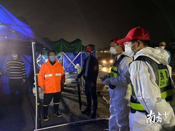坪地街道黨工委書記曾憲旺冒雨夜巡檢查點(diǎn),了解當(dāng)日車流量以及重點(diǎn)區(qū)域人員返深情況,同時慰問一線執(zhí)勤人員及志愿者。
