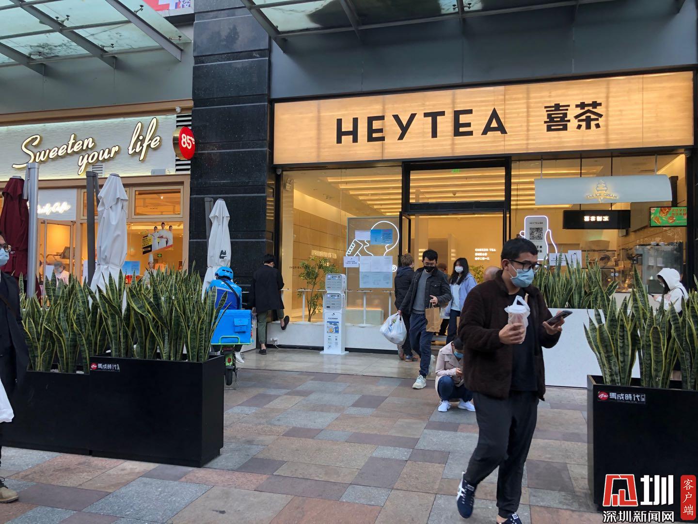 馬成時代廣場的喜茶門店比起上周人流逐漸多了起來。