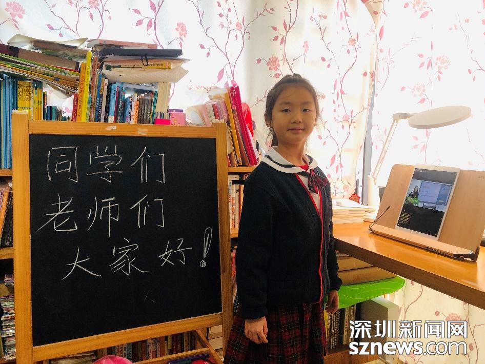 早早地,小妞要我在小黑板上寫下對老師們對同學們的問候。還記得昨晚臨睡前,她興奮地說:“明天就能和老師和同學們在網上相見,太開心了?!?/p>