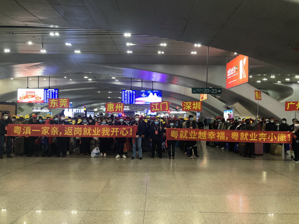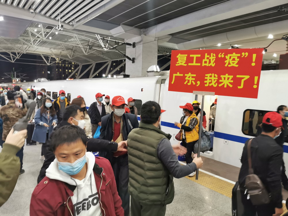 目前,在全省上下全力抗擊新冠肺炎疫情的同時(shí),廣東各類企業(yè)已陸續(xù)復(fù)工復(fù)產(chǎn)。針對(duì)節(jié)后部分務(wù)工人員返程難、部分企業(yè)用工難的問(wèn)題,廣東省人社部門在全面落實(shí)省委省政府疫情防控決策部署的前提下,主動(dòng)加強(qiáng)與勞務(wù)輸出省份溝通對(duì)接,對(duì)疫情相對(duì)平穩(wěn)、來(lái)粵就業(yè)人員相對(duì)集中的云南、四川等部分省份,聯(lián)合當(dāng)?shù)厝松绮块T共同組織開行“點(diǎn)對(duì)點(diǎn)”返粵返崗專列,為務(wù)工人員提供全流程的返崗對(duì)接服務(wù)。據(jù)悉,在本趟列車開行前,廣東省人社部門根據(jù)重點(diǎn)企業(yè)和項(xiàng)目復(fù)工復(fù)產(chǎn)安排,向云南省人社部門提供不同時(shí)段的企業(yè)空缺崗位共11萬(wàn)個(gè),由當(dāng)?shù)厝松绮块T按需組織發(fā)動(dòng)務(wù)工人員并開展集中健康檢測(cè),出具健康證明;途中,云南人社部門會(huì)同鐵路部門,共同落實(shí)好務(wù)工人員進(jìn)站、候車、乘車、出站等環(huán)節(jié)的疫情防控和客運(yùn)服務(wù)等措施,確保復(fù)工人員安全、有序、溫馨出行;到粵后,廣東人社部門提供專車將務(wù)工人員接駁至企業(yè),幫助企業(yè)做好疫情期間員工組織接收、上崗復(fù)工等準(zhǔn)備工作。廣東省人社廳相關(guān)工作人員表示:“今年受疫情影響,節(jié)后短期缺工現(xiàn)象比往年更為突出。特殊情況需要特別舉措,除了讓務(wù)工者免費(fèi)乘坐返崗專列,我們還為一些去汕頭、陽(yáng)江等較遠(yuǎn)地區(qū)企業(yè)而沒(méi)法當(dāng)天到達(dá)的零散務(wù)工者,貼心地提供免費(fèi)住宿,還買好次日去企業(yè)所在地的車票,送他們上車,并對(duì)接當(dāng)?shù)厝松绮块T安排車輛接駁至廠。我們通過(guò)這種‘一條龍’無(wú)縫對(duì)接服務(wù),既滿足企業(yè)復(fù)產(chǎn)的用工需求,又降低返程運(yùn)輸?shù)囊咔閭鞑ワL(fēng)險(xiǎn)”。